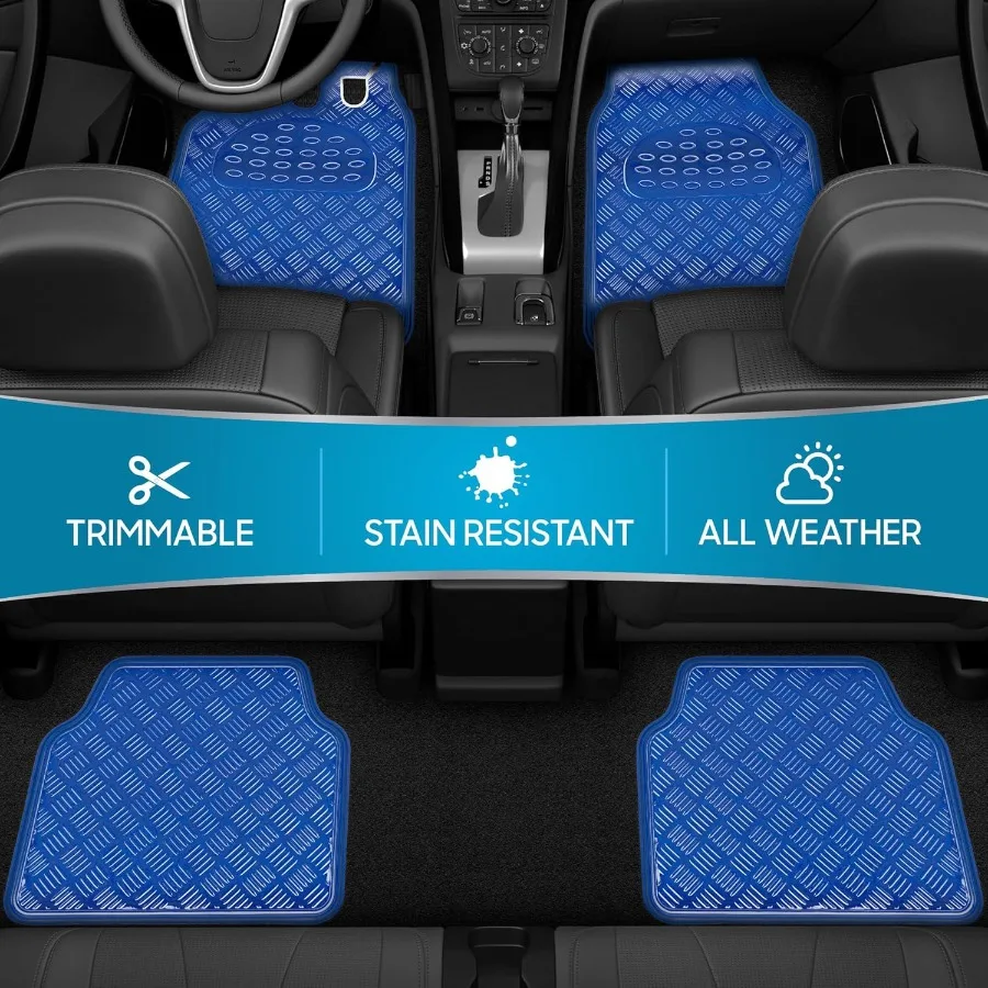 ALL-WEATHER PROTECTION - Engineered to guard against rain, snow, mud, and spills, these all-weather car floor mats provide comprehensive protection, ensuring your vehicle's interior stays clean and dry year-round.