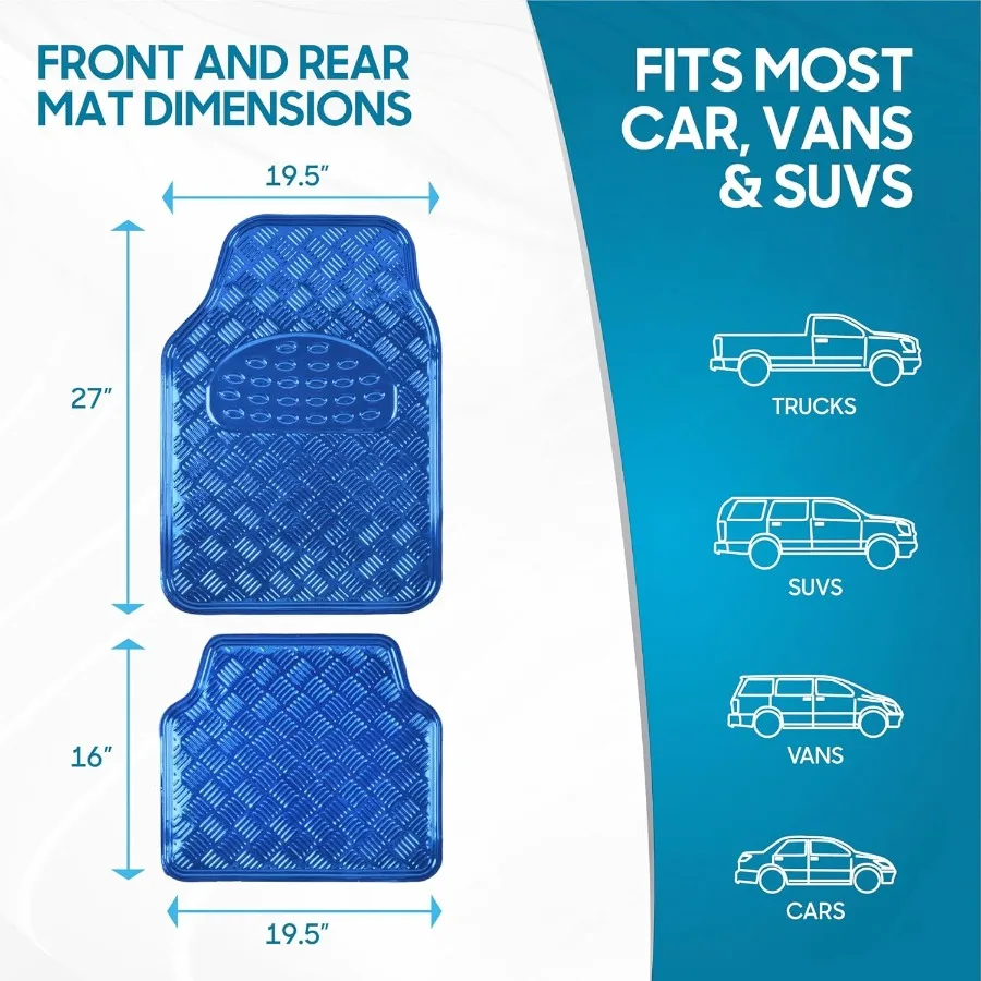 UNIVERSAL FIT DESIGN - Fits most cars, trucks, vans, and SUVs, providing versatile and convenient floor protection. Measurement: Front Floor Mats: 27.5" (L) x 19" (W) | Rear Floor Mats: 16.5" (L) x 19" (W)